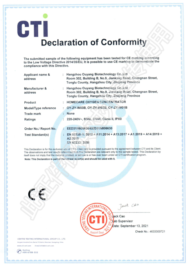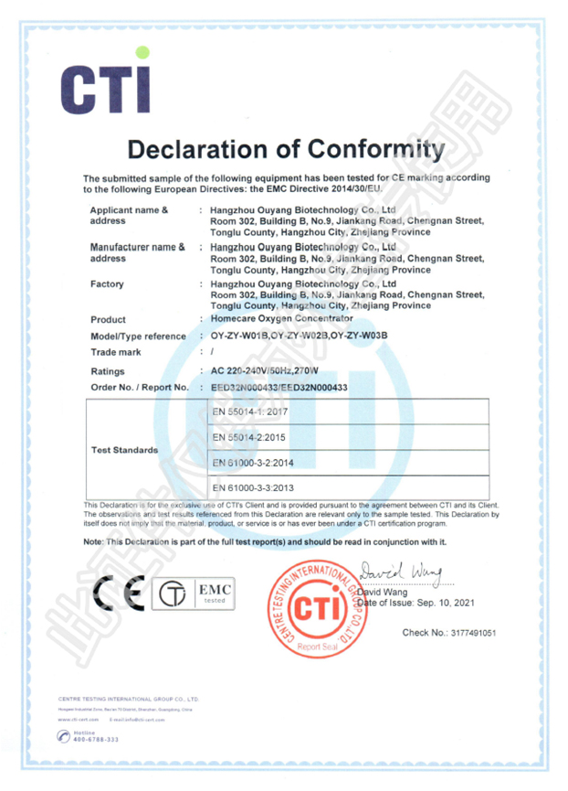 3L2L1L制氧機(jī)EMC(電磁兼容)CE證書(shū) |